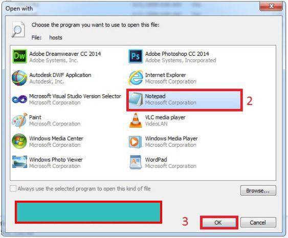 Trên bàn phím chọn tổ hợp phím "window" + "R" nhập đường dẫn " C:\Windows\System32\drivers\etc\hosts"và mở nó bằng Notepad.
